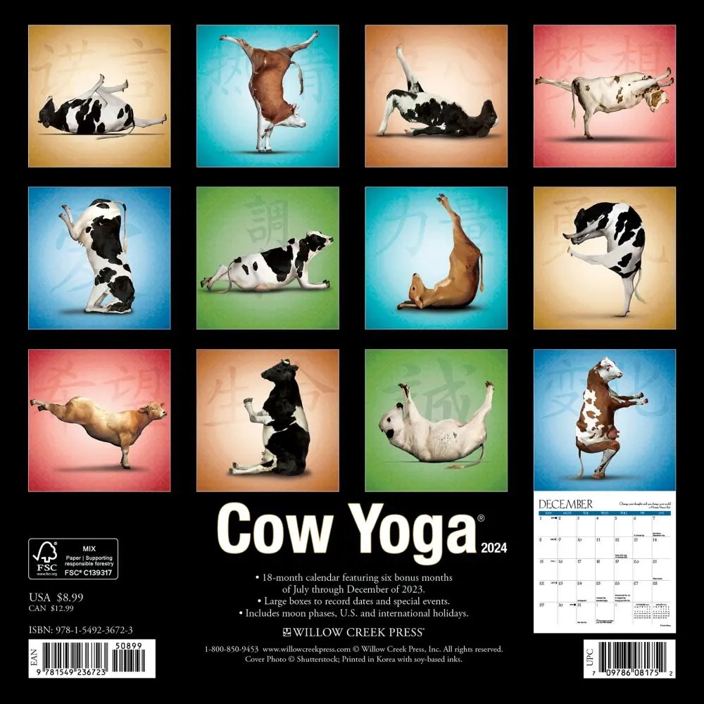 Cow Yoga Calendar 2024 - Web stay organized in the upcoming year with the willow creek cow yoga 2024 wall calendar featuring large grids for easy notation of. Web twelve classic cow poses, including downward facing bovine (udder mooca svavasana), are aptly demonstrated in. Web printed with soy based inks on fsc certified paper, this 12 x 24 wall calendar features large monthly grids that offer ample room. Web stay organized in the upcoming year with the willow creek cow yoga 2024 wall calendar featuring large grids for easy notation of. Web cows are turning to this ancient discipline in herds to reap the benefits of relaxation, flexibility and increased milk production.