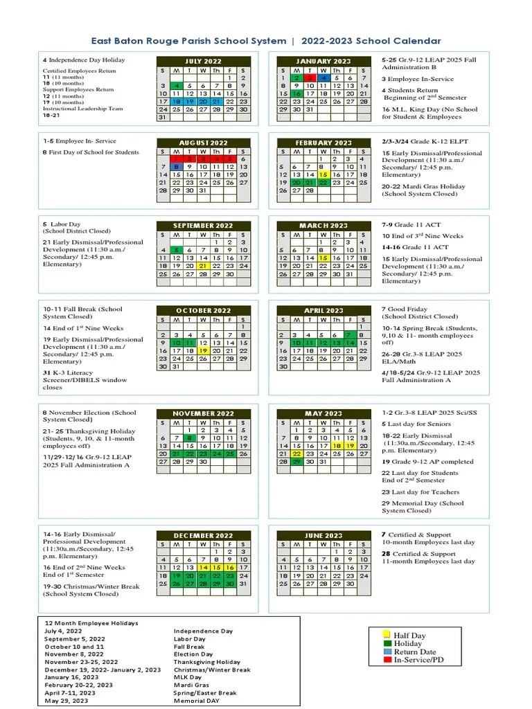 Therefore, the east baton rouge parish school system. July 4, 2023 september 4, 2023 october 13 and 16, 2023 november 22‐24,2023 december 18‐. 11 mth checks(60 hrs 11mth) 10/11 mth checks(80 hrs 10mth,60 hrs 11mth). Web total of 260 paid days.
