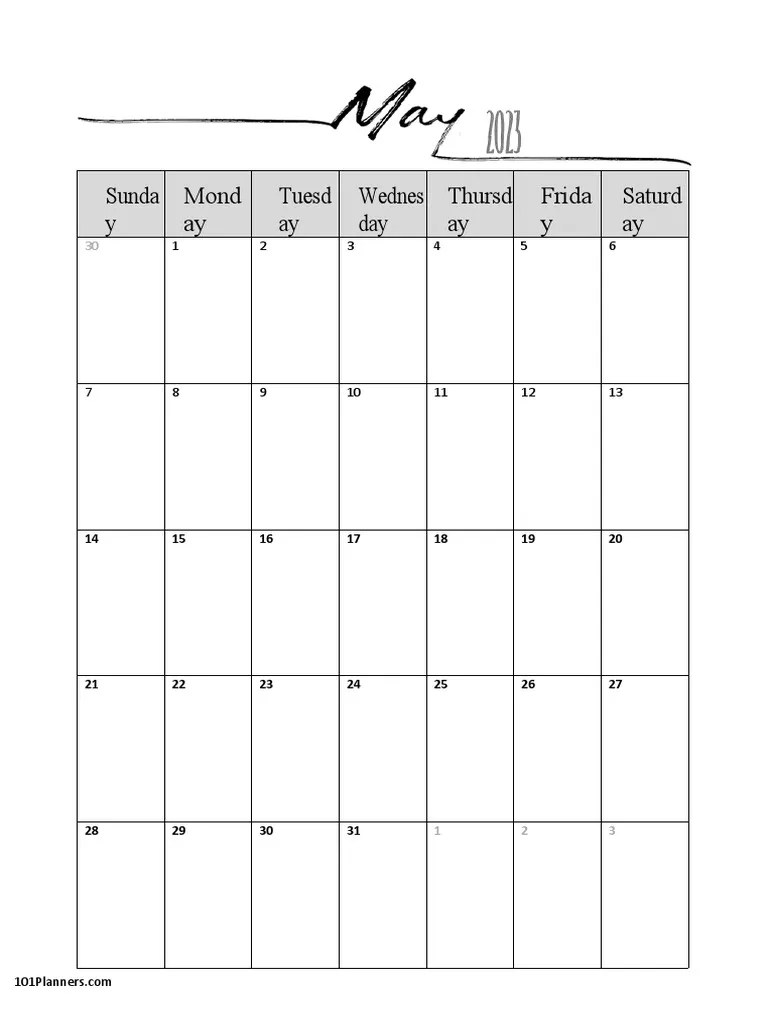 Web free printable monthly calendar with holidays for united states, may 2023. And see for each day the sunrise and sunset in may 2023. The month calendars are available in multiple. Suitable for appointment and vacation tracking.