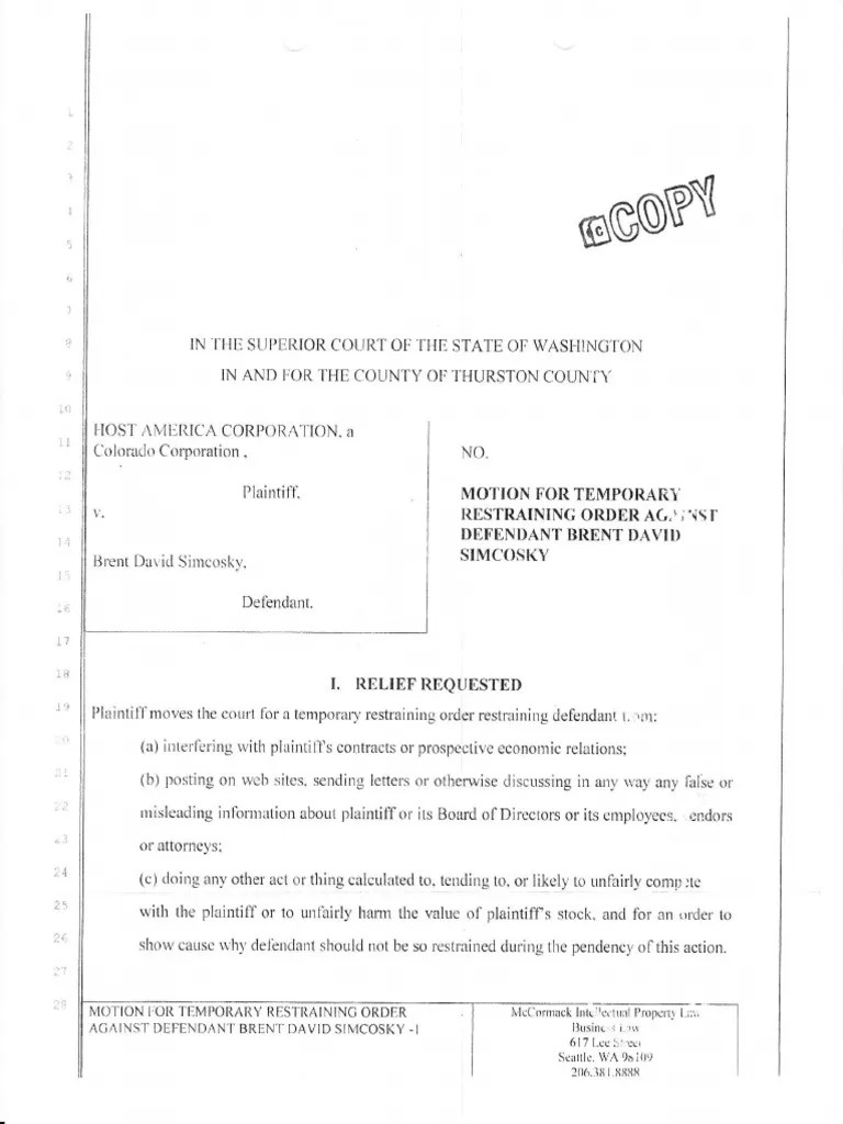 Host America v. Simcosky Washington State Thurston County Superior